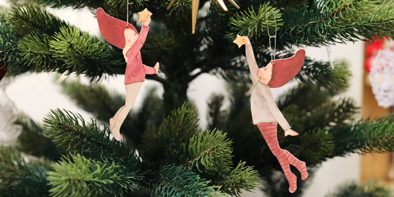 Tall Hat Tales ペーパークラフト・天使と星 ¥1,100(税込) 小さな星を持った愛らしい天使たち。天使を切り抜いて枝に飾ったり、ギフトタグやクリスマス・大晦日のディナーの席札として使ったりできます。かわいいガーランドを作ったり、ひとつずつクリスマスツリーに飾ることもできますよ