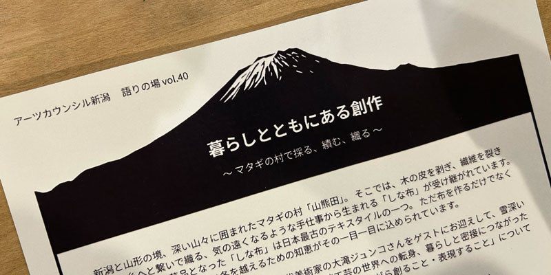 語りの場『暮らしとともにある創作』 2026-02-06 ダイアリー 今日は、仕事の後、アーツカウンシル新潟さん主催の『語りの場 vol.40・暮らしとともにある創作』に参加してきました。会場が医学町ビルだったので、職場からは徒歩10歩。 ゲストは大滝ジュンコさん。現代… Read More