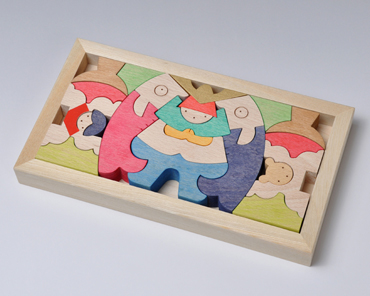 もとは、組み木のワークショップで10x20cmの板で作るために作図された五月人形です。これを18mm厚のブナ材で作り枠に収めました。 飾り方はさまざま考えられます。自由な発想で飾り付けてください。