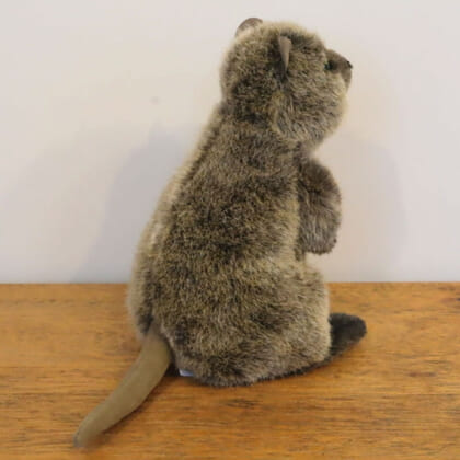 クアッカワラビーは、オーストラリアのロットネスト島に生息しています。カンガルーとおなじお腹に袋を持つ動物です。ペットにはできない動物ですが、ぬいぐるみは側においておくことができますね。この笑顔に気持ちが明るくなりそうです。