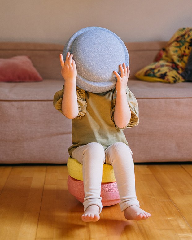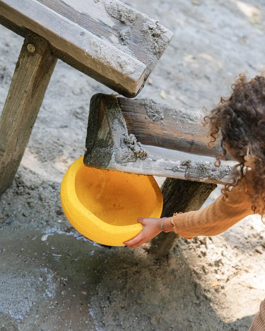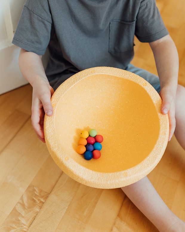シュタペルシュタインは、直径27cmの大きなお椀のような形をしています。子どもが頭にかぶったり、両手で抱えるくらいの大きさです。ひとつが180gととても軽く、小さな子でも簡単に持ち運べます。