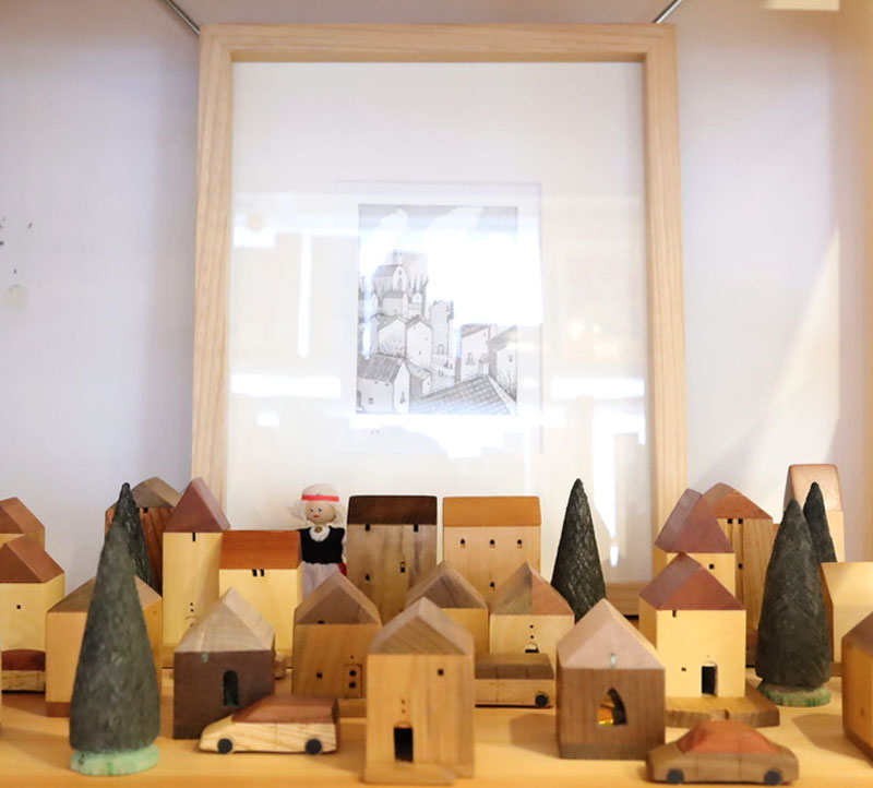 木の美しさがそのまま生かされています。仕上げや細工は細かく、とても丁寧です。中世ヨーロッパの街並みのようなデザインで、ひとつでも複数でも、メインでも脇役でも、場を彩ります。よく眺めると隠れたところに発見があり、見つけるのも楽しみです。