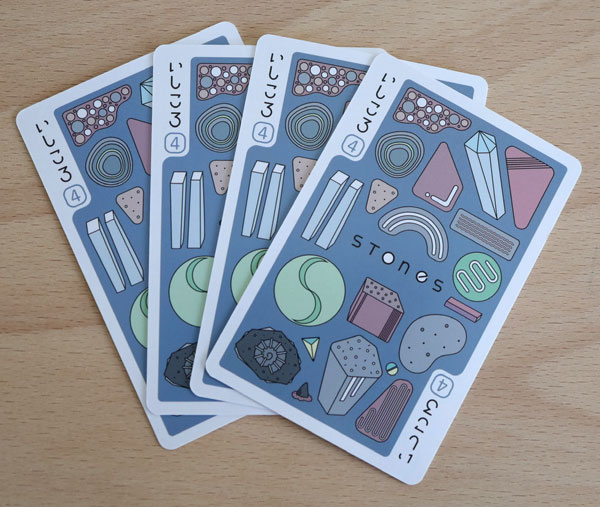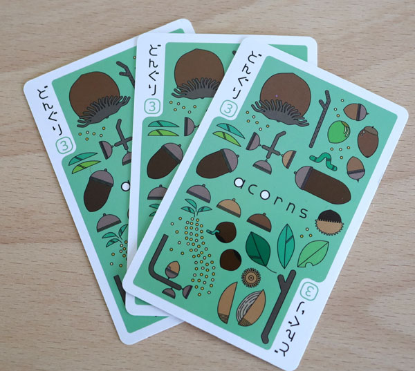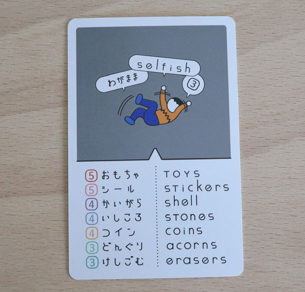 アイテムごとに集める枚数が決まっており、カードの角に記されています。数字はそのまま得点となるので、どのアイテムを集めるかも作戦です。