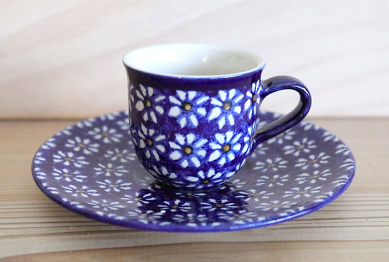 ご紹介するのは、カンネギーサー陶器の代表的な特徴である、深い藍色と花柄のスポンジ模様。工房はポーランドの国境付近にあり、ポーリッシュポタリーの雰囲気もありますが、漂う堅実さや透明感に、ドイツらしさを感じます。古いもので、現在はあまり見当たらないデザインです。