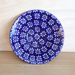 お花が放射状にきれいに並ぶ美しいソーサーです。中央にカップを受けるための浅いくぼみがありますが、普段のお皿にもお使いいただけそうなデザインです。