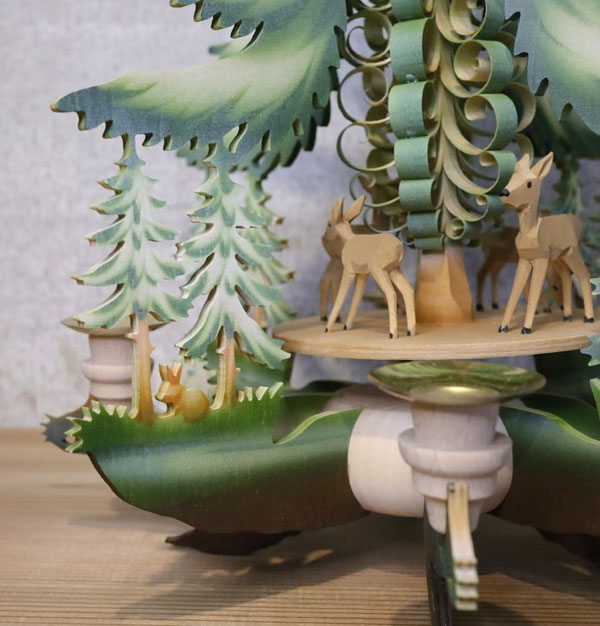 土台には4つのキャンドルホルダーがあり、一番上にはプロペラをセットします。キャンドルホルダーにキャンドルを立て、火を付けると、熱による気流でプロペラがくるくる回ります。