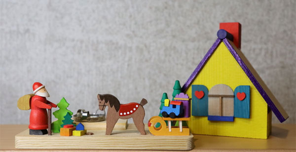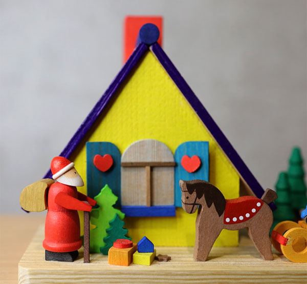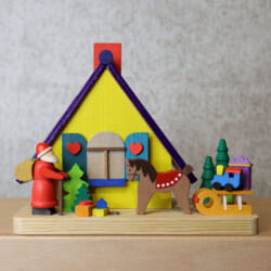 グラウプナーのこちらの煙出しは、お家がカバーになっています。黄色い壁、赤い煙突、屋根は着色がなく木目をお楽しみいただけます。
