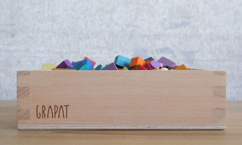 グラパットのストレージボックスは、ちょっと盛り上がって全ピースが入ります。遊ぶ時は別トレイに移すと遊びやすそうです。