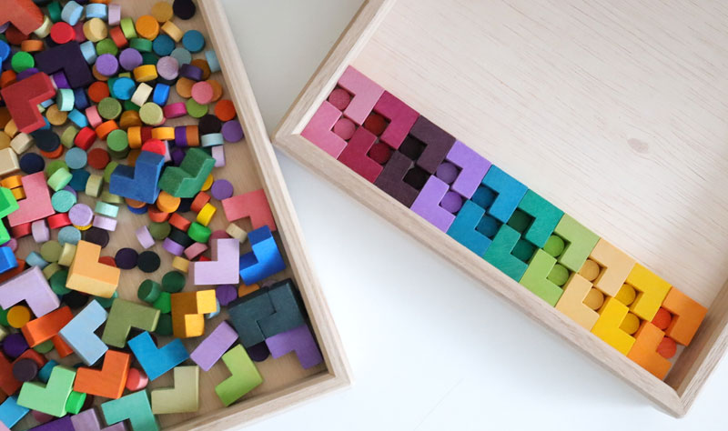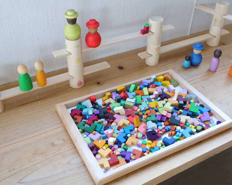 色とりどりの小さいたくさんのピースは、見ているだけでワクワクします。遊びたい気持ちを引き出してくれるおもちゃです。