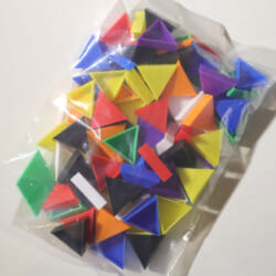 大袋の4分の1の量が入った1/4パックです。一つの色が10個前後、全体で85個前後入っており、同じ色をたくさん使ったデザインが楽しめます。1/4パックでプリズモボード大は全部埋まります。