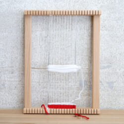 縦糸張りを手伝ってあげていただき、そばに付いて横糸を通すところだけやらせてあげれば3歳頃からでも扱えます。間違っても、子どもが気にしなければそのまま続けてもいいですね。だんだんと上手になります。