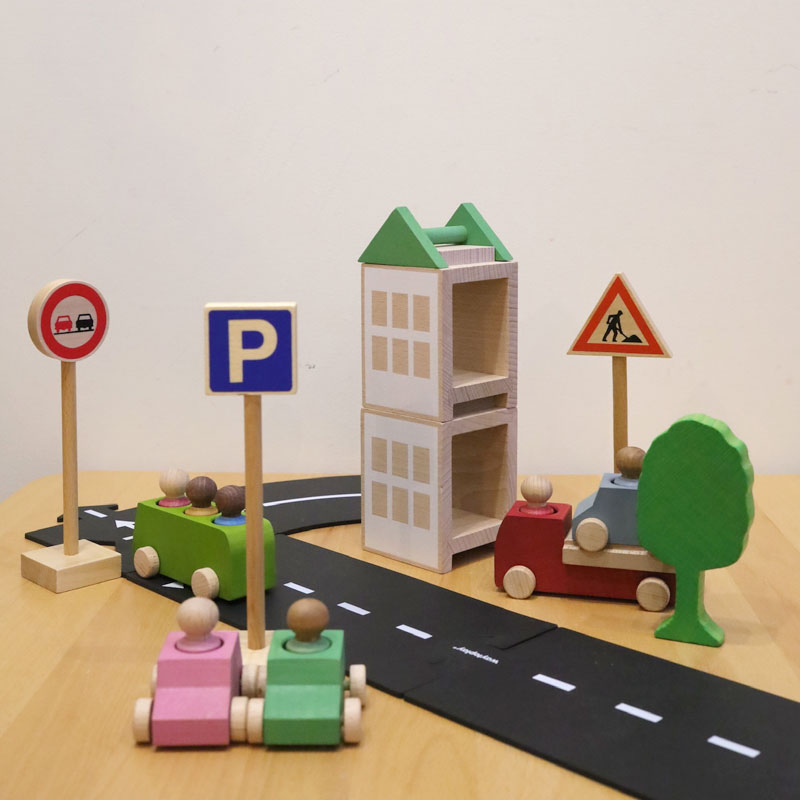 街にはいろんな交通標識が掲示されており、子どもたちは興味津々です。積木遊びや車遊びの中に標識をおいてあげると、標識の意味を考えながら遊びにストーリーが生まれます。