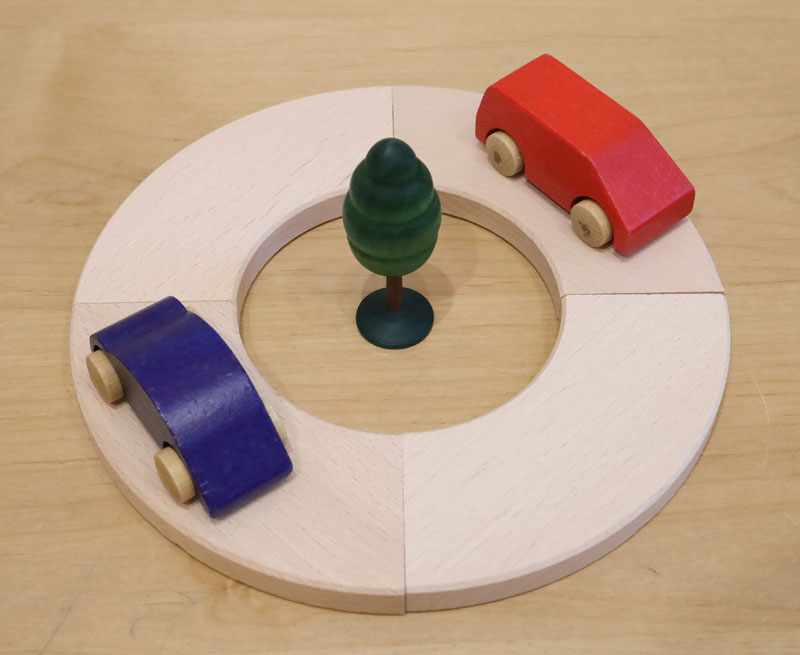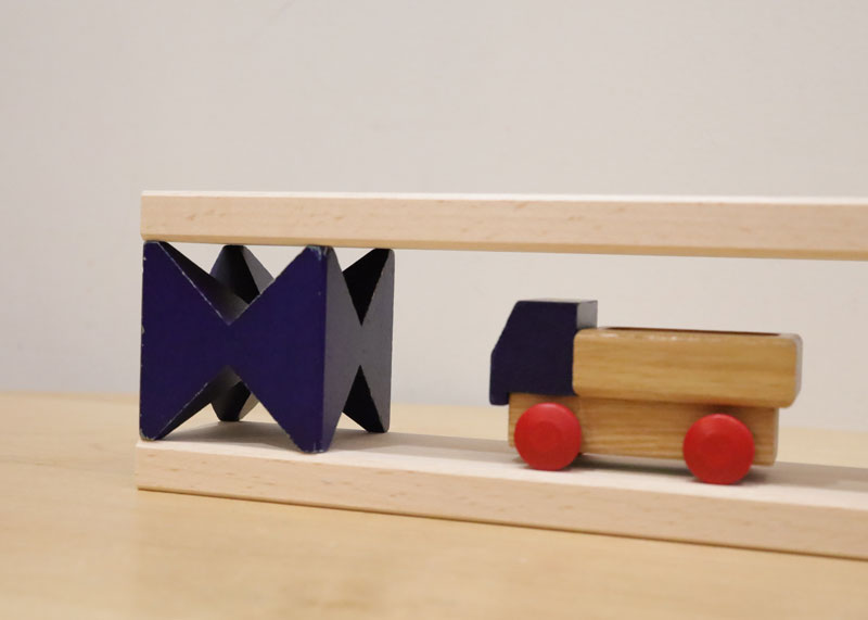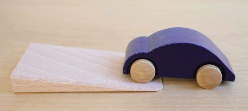 傾斜のついたパーツが、道路で遊ぶ子どもには嬉しい。板の端にぶつからずに車を道路に乗せることができます。