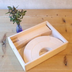 直線とカーブと傾斜つきの薄板積み木セットです。並べて道路に見立てたり、板積み木として積み木遊びに変化を加えます。