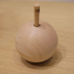 つまんで回すと、軸はだんだん横向きに倒れていき、パカッと開いて回り、やがて止まります。次々現れる変化が楽しいコマです。
