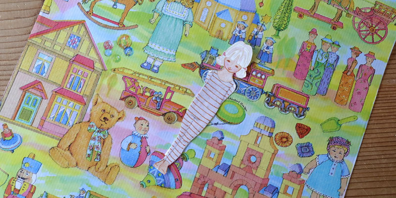 先日の山脇百合子さんの展示の中に、山脇さんお手製の着せ替え人形遊びがありました。お洋服を自分で作るの、いいな!と思いさっそくやってみました。着物を着せたかったのでモデルを探していたら、折り紙の図案が出てきて、とてもかわいい。