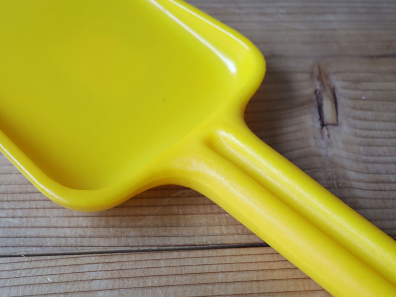 柄からスコップ部まで一体型で、部品が外れる心配がありません。丸洗いのときに、継ぎ目に水が入り込むことがなく、早く乾きます。