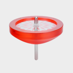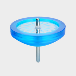 『少々の衝撃でも重心がずれにくく、丈夫でよく回転するこま』を目指して作られました。本体にポリカーボネートを使用しており大変丈夫です。付属の紐は、直径約3.5mmで、撚りのしっかりした巻きやすい紐です。生産は中国ですが、鋳型は東京都の町工場の力を借り製品化されました。