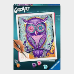 台紙の絵には細かく数字が割り振ってあります。数字と同じ番号の絵の具を塗っていくことで、アート作品をつくることができます。箱には道具が全て入っており、すぐに取り掛かることができます。