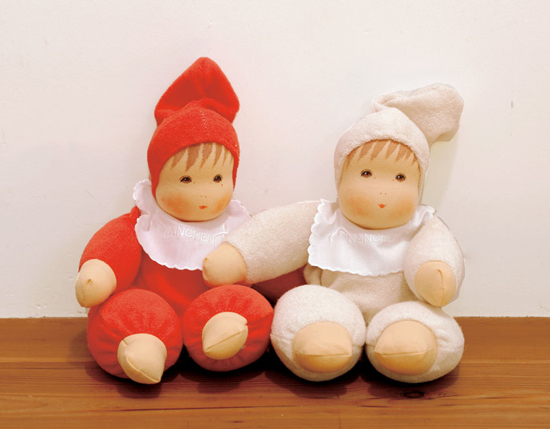 オーガニックコットン、植物性の染料、bio認定の羊毛など、子どもに手渡すことに徹底的にこだわったお人形は、ひとつひとつ手作りで、表情も手触りもとても優しいです。 こちらNAベビーは、羊毛を詰めすぎず、ふんわり柔らかくてクタッと抱っこに寄り添います。体の柔らかい小さい子には、同じくソフトなお人形が適しています。一緒にねんねしたり、連れて歩いたり、不安を鎮めたり、いつもそばに居てくれるお人形です。 お手入れは、ぬるま湯で優しく手洗いの後、充分に乾燥させて下さい。