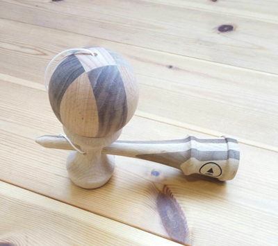 ツートンの寄せ木が美しいこちらはちょっと玉が重くて難易度高いですが、なんだか持っているだけで嬉しい♪コマとけん玉のイベントもやりたい。やりたいことがいっぱいです。
