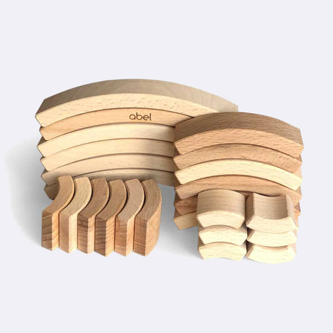 CUBORO WAVE【キュボロ・ウェイブ】・追加セット ¥38,500(税込) 上下に波打つレールセットです。レールは、くぼみとのぼりが繰り返され、ビー玉は波を渡る船のように揺れながら、走っていきます。ビー玉のスピードに合わせたウェイブのデザインは、ビー玉をなめらかに軽快なリズムで走らせ、ワクワクや、見つめる集中力を高めます。