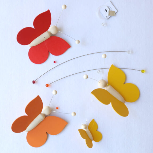 フレンステッドモビール161a-NB/Airflow 17 ¥7,590(税込) らせん状になったたくさんのプリーツは、空気そのものをイメージする動きを見せてくれます。縦軸を中心に、空気の流れに沿ってゆっくりと回ります。白とナチュラルな木の色を基調としたデザインは、他のモビールとも合わせやすく、動きの異なりと調和をお楽しみいただけます。
